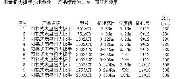 此款表盤(pán)式扭力扳手由扳手體及彈性元件放大機(jī)構(gòu)和記憶機(jī)構(gòu)等幾部分構(gòu)成,我司表盤(pán)式扭力扳手具有精度高外型漂亮運(yùn)用方便、可靠性好、頭部可替換等特點(diǎn)。本表盤(pán)式扭力扳手廣泛應(yīng)用于航天、航空、船只、轎車、鐵路、工程機(jī)械、電力等行業(yè). 表盤(pán)式扭力扳手又名力矩扳手、扭力扳手、扭矩可調(diào)扳手,是扳手的一種,通常分為兩類:手動(dòng)力矩扳手和電動(dòng)力矩扳手。 手動(dòng)數(shù)顯扭力扳手:現(xiàn)階段分為機(jī)械音響報(bào)警式,數(shù)顯式,指針式(表盤(pán)式),打滑式(自滑轉(zhuǎn)式).其間機(jī)械音響報(bào)警式,選用杠桿原理,當(dāng)力矩抵達(dá)設(shè)定力矩時(shí)會(huì)呈現(xiàn)"嘭"機(jī)械相碰的聲響,爾后扳手會(huì)變成一個(gè)死角,及相當(dāng)于呆扳手,如再用力,會(huì)呈現(xiàn)過(guò)力表象.