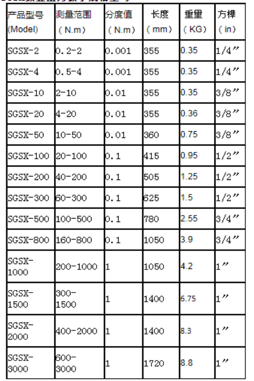 SGSX數(shù)顯扭力扳手規(guī)格型號